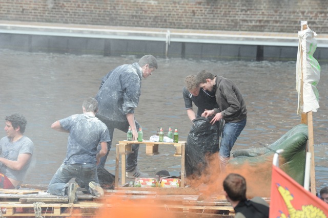 Course de baignoires sur le bassin Paul Vatine, étudiants de l'ENSM du Havre.