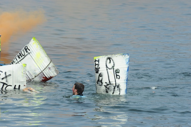 Course de baignoires sur le bassin Paul Vatine, étudiants de l'ENSM du Havre.