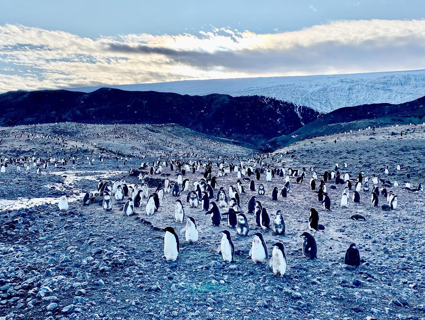 En quittant Cape Bird, je ne peux que me réjouir de voir les Adélies en si grand nombre. Plus au nord, les populations sont en perpétuel recul. Le réchauffement de l’atmosphère fait surchauffer ces oiseaux adaptés au froid extrême. La banquise fond plus vite, les privant de refuge où muer ; les pluies à la fréquence croissante trempent les poussins, et la fonte de plus en plus précoce de la neige au printemps inonde les nids.