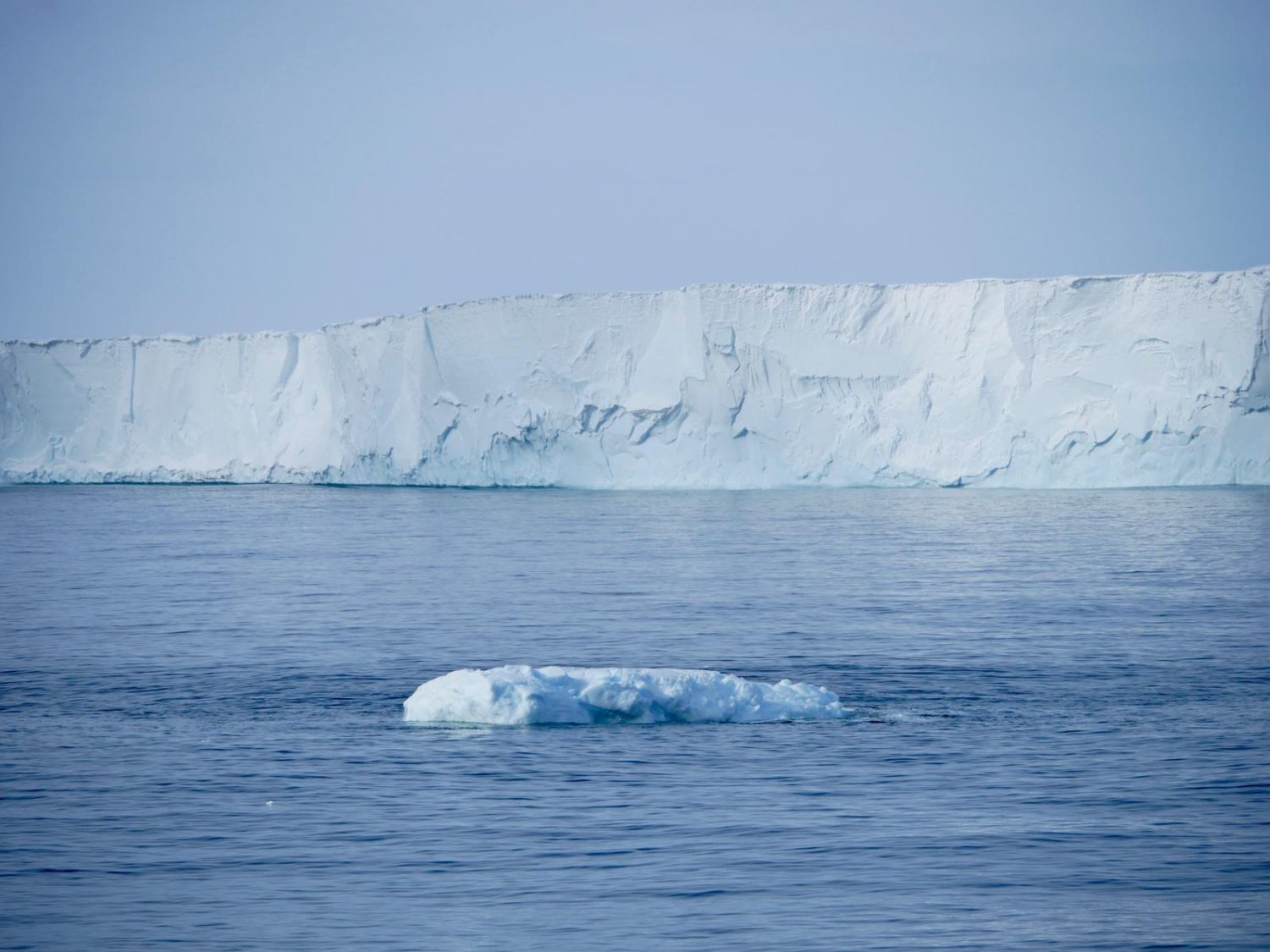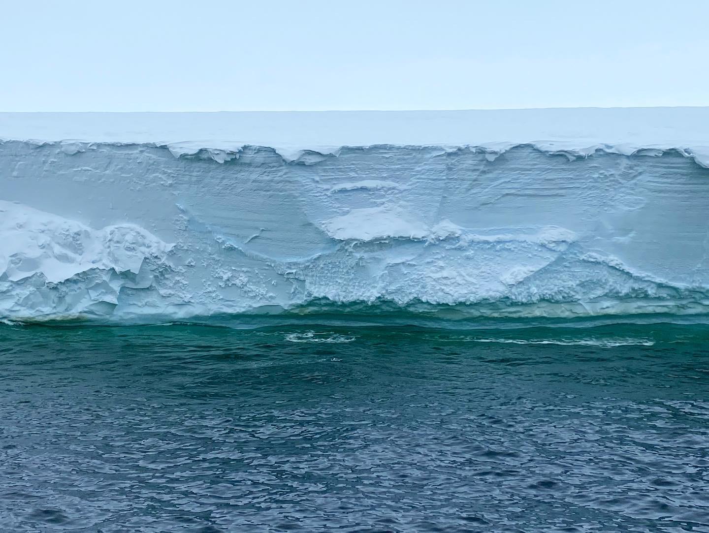 Nous ne la quitterons plus de la journée. Ce front, irréel de régularité, plonge verticalement de quarante mètres de hauteur dans un marine profond, et court sur plus de huit-cents kilomètres, plus blanc encore que les falaises de craie normandes. Au-delà, c’est la plateforme glaciaire de Ross, aussi grande que l’Espagne et épaisse de deux à six-cents mètres. C’est la plus étendue sur Terre.