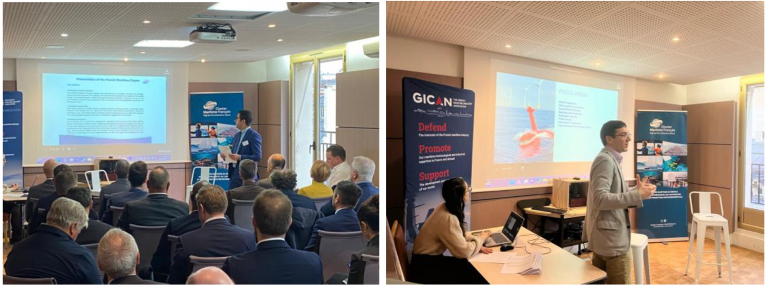 La rencontre portait sur le thème de la Décarbonation du transport maritime et la coopération France-Norvège en la matière. Elle a réuni une vingtaine d’acteurs norvégiens, dont le pôle de compétitivité Maritime CleanTech et 14 sociétés norvégiennes spécialisées dans les solutions de transport maritime bas-carbone ou zéro-émissions, notamment pour la mobilité électrique navire à passager, et les infrastructures. Côté français, une vingtaine de membres du Cluster Maritime Français et du GICAN y a participé.