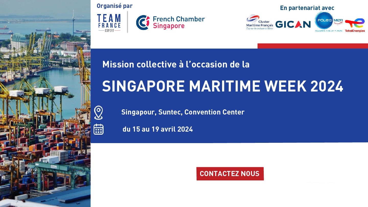 … Rejoignez la mission collective de la Team France Export lors de la Singapore Maritime Week du 15 au 19 Avril prochain.