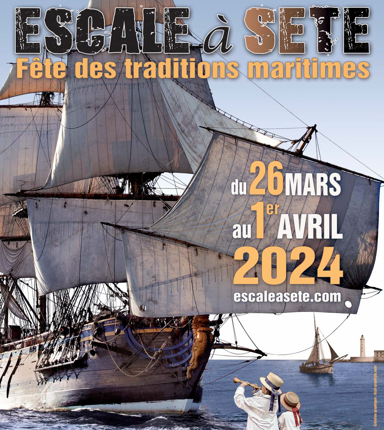 • Dès le petit matin, lancement d’Escale à Sète 2024 toutes voiles dehors avec la parade d’arrivée des grands voiliers, accompagnée par les flottilles et les bateaux de travail du port de Sète.