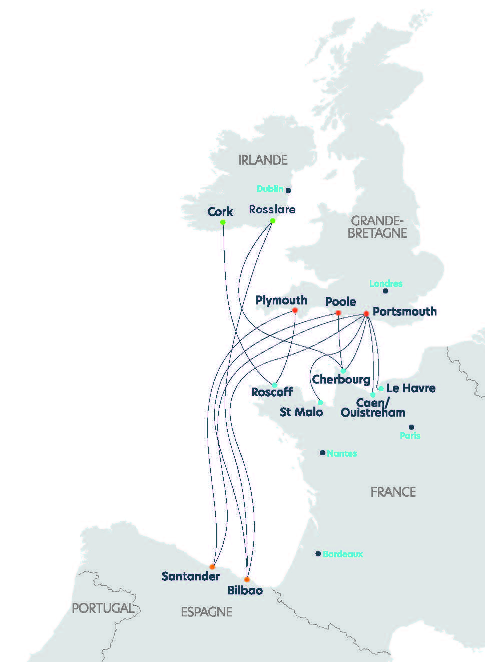 En 2025, la compagnie exploitera jusqu’à 98 liaisons hebdomadaires transmanche régulières reliant, Roscoff à Plymouth, Saint-Malo, Caen/Ouistreham, le Havre et Cherbourg à Portsmouth et Cherbourg à Poole.