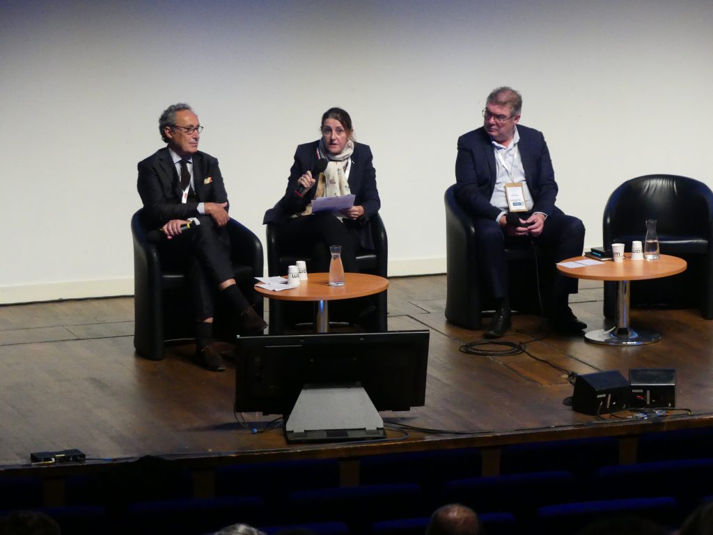 De g. à dr. H. Allard, Président opérationnel du cabinet de courtage Filhet Allard Maritime, C. Ezcutari, avocate en affaires pour le cabinet Norton Rose Fullbright et P. Renaudin, directeur de la filière maritime de la Banque Populaire Grand Ouest