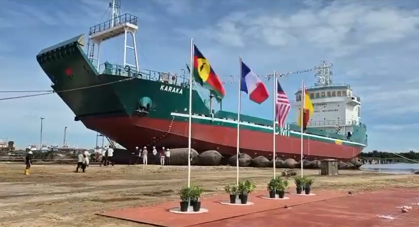 Le 20 septembre 2025, les chantiers Berjaya Dockyard Sdn Bhd à Miri en Malaisie ont mis à l’eau le M/V KARAKA, le nouveau caboteur de la CMI (Compagnie Maritime des Îles), avec la technique des boudins gonflables.