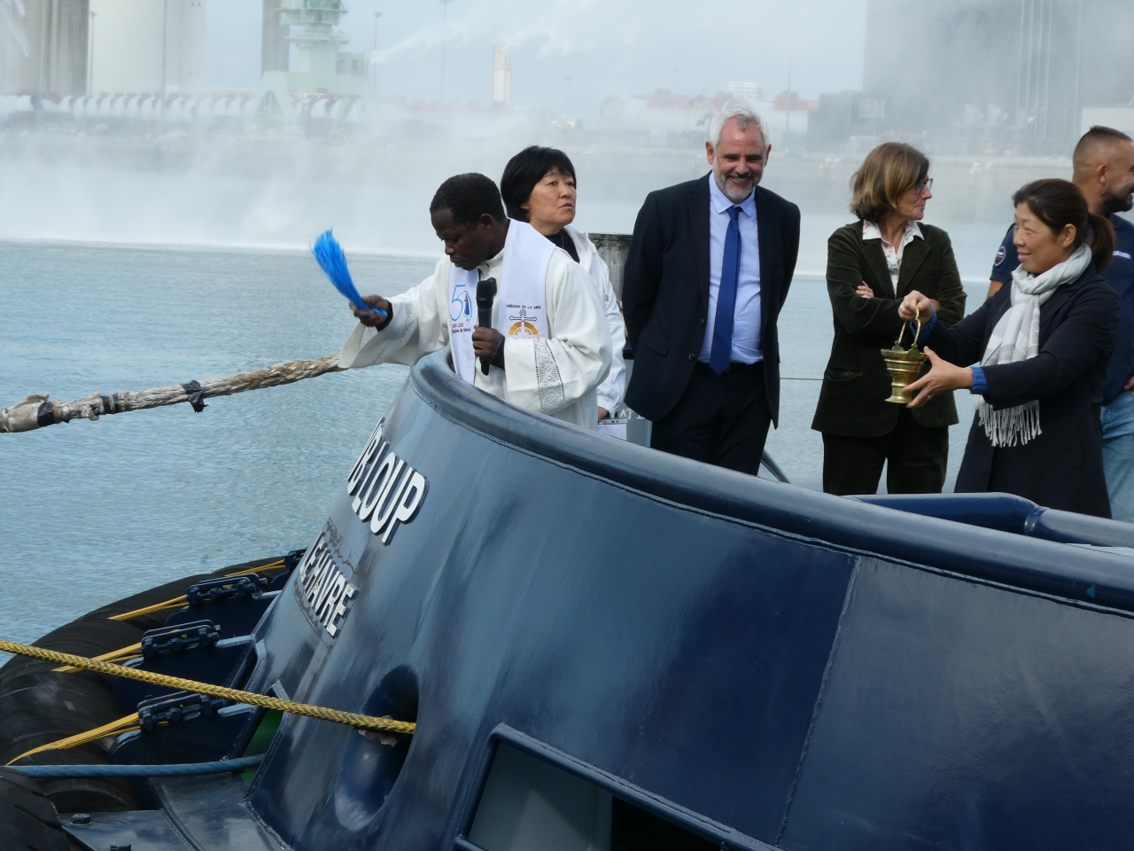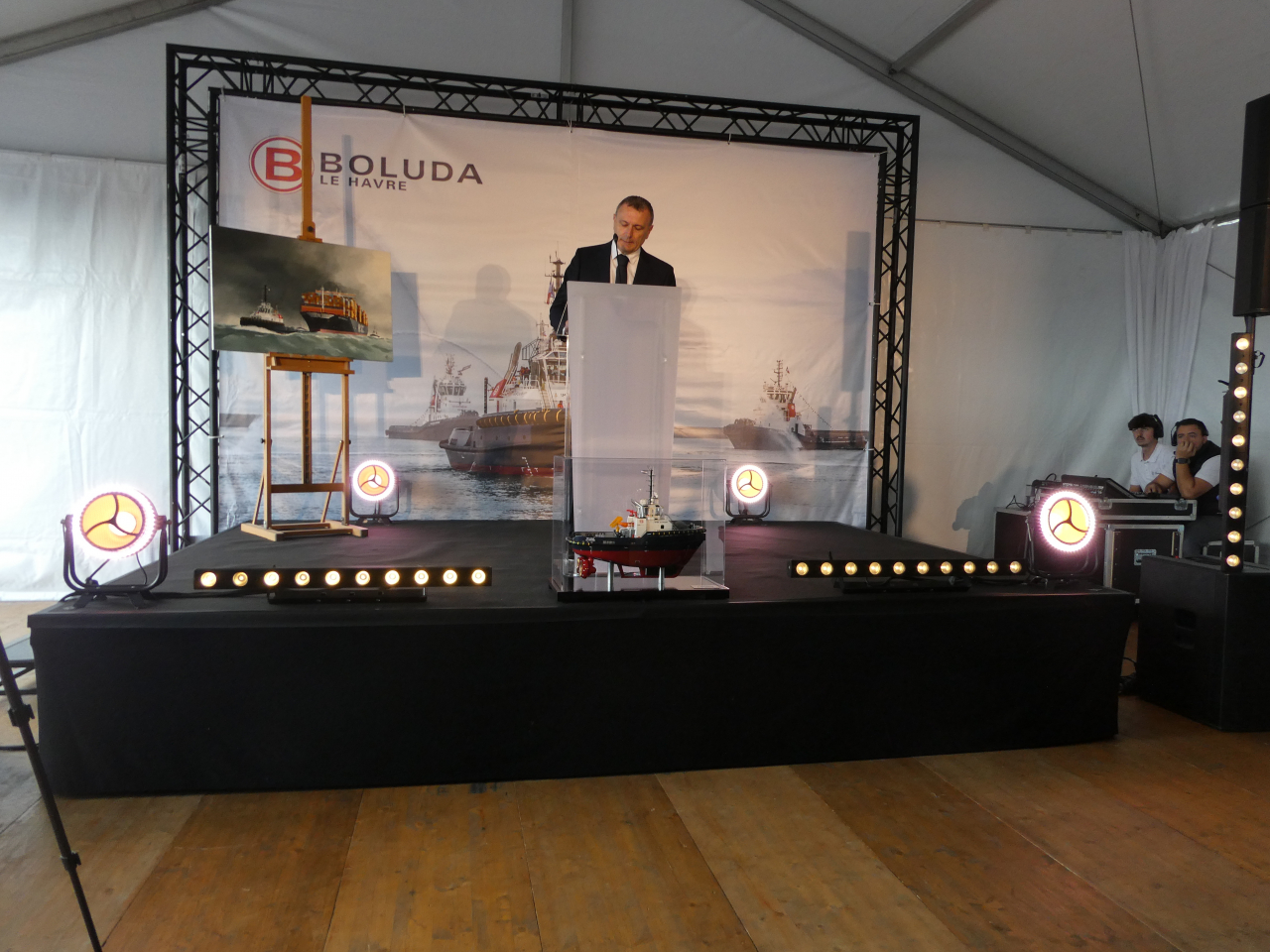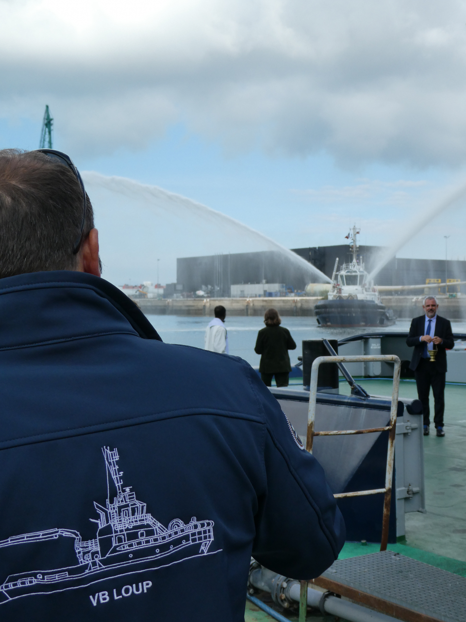 Lundi 29 septembre, l’ensemble de la communauté havraise s’est réunie pour la bénédiction du tout dernier remorqueur de la société BOLUDA TOWAGE FRANCE mis en service sur son site du HAVRE. Une cérémonie honorée de la présence du Président de BOLUDA, Vicente BOLUDA, lors de laquelle Laurent MENAGER, Directeur Général de BOLUDA TOWAGE FRANCE, Agnès FIRMIN LE BODO, Marraine du navire et Edouard PHILIPPE ancien Premier Ministre et maire du HAVRE ont successivement pris la parole avant une bénédiction sous les jets d’eaux nourris par la flotte du site du HAVRE.