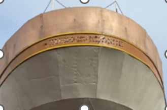 Côté tribord : création d’un blason de la ville de Dunkerque composé du Lion des Flandres et d’un Dauphin.
