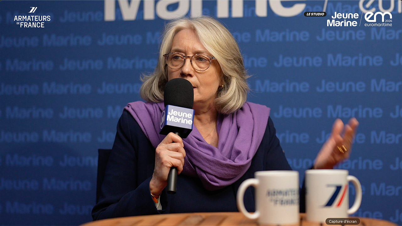 Le Studio Jeune Marine pour le salon EUROMARITIME 2026 en partenariat avec Armateurs de France a accueilli Nathalie MERCIER-PERRIN, Présidente exécutive du Cluster Maritime Français.