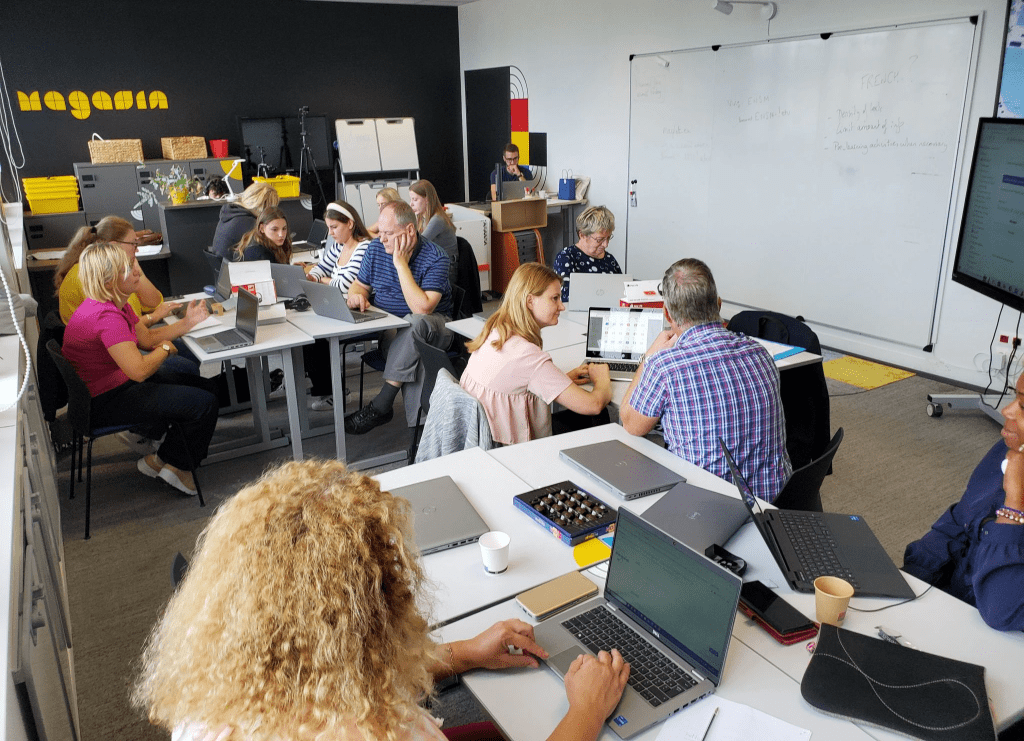 Le groupe de projet MARLANG au travail dans le pedagolab “ONDE” de l’ENSM financé par la région Normandie en septembre 2023. © Marlang